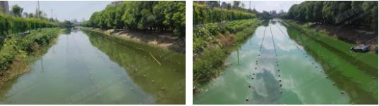 經(jīng)過(guò)一個(gè)半月的治理,變化如下:0ds新型光催化網(wǎng)_水庫(kù)治理_河道治理_水生態(tài)修復(fù)_水環(huán)境治理與修復(fù)_江蘇雙良環(huán)境科技有限公司