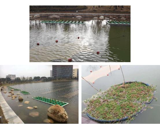 由于湖中生物缺失,種植了總面積為500平方米的植物,選擇了冬季耐寒的水生植物——菖蒲(長(zhǎng)方形,共456平方米)、金魚(yú)藻(圓形浮島,共44平方米),來(lái)加強(qiáng)氨氮和總磷的降解,從而恢復(fù)整個(gè)湖體的生態(tài)系統(tǒng)。LGe新型光催化網(wǎng)_水庫(kù)治理_河道治理_水生態(tài)修復(fù)_水環(huán)境治理與修復(fù)_江蘇雙良環(huán)境科技有限公司