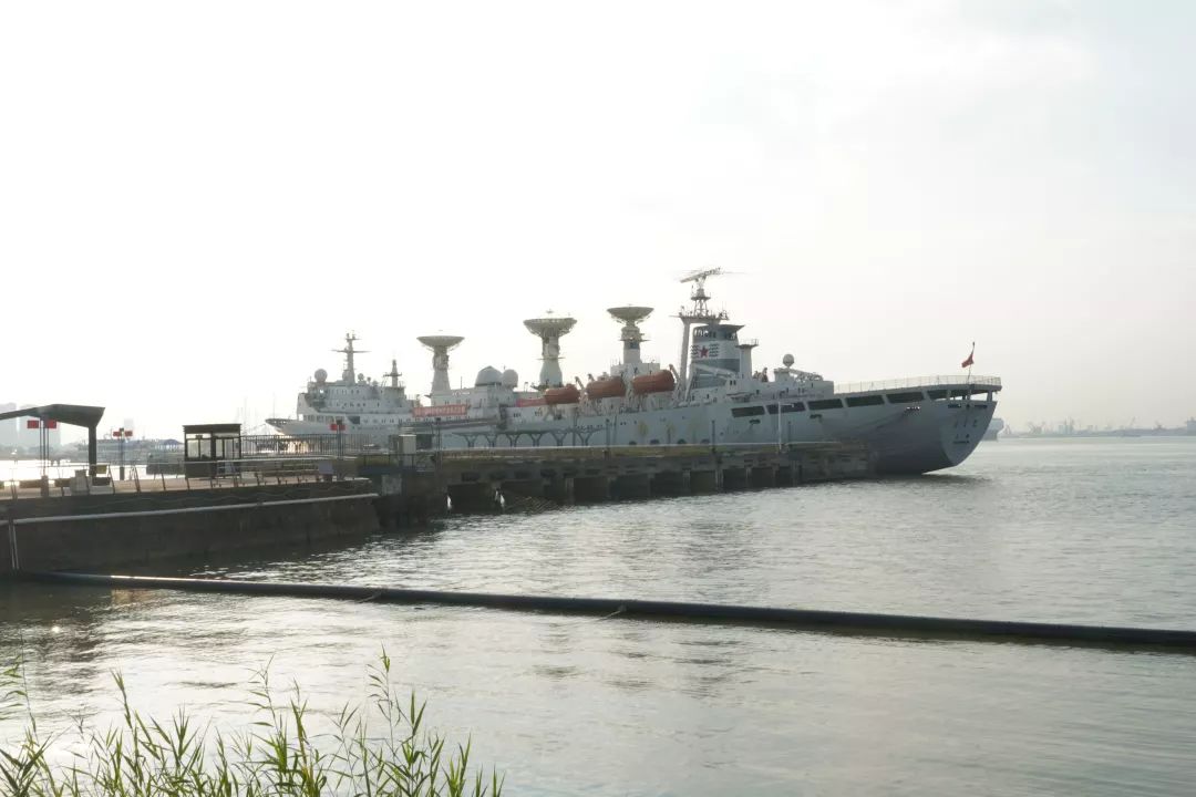 在完成今日課程學(xué)習(xí)后,陪同人員帶領(lǐng)學(xué)員們來(lái)到長(zhǎng)江邊上的遠(yuǎn)望基地,參觀一艘創(chuàng)紀(jì)錄的功勛測(cè)量船——遠(yuǎn)望2號(hào)。