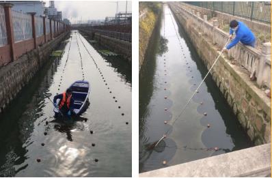 利港中心河現(xiàn)場維護GkO新型光催化網(wǎng)_水庫治理_河道治理_水生態(tài)修復(fù)_水環(huán)境治理與修復(fù)_江蘇雙良環(huán)境科技有限公司