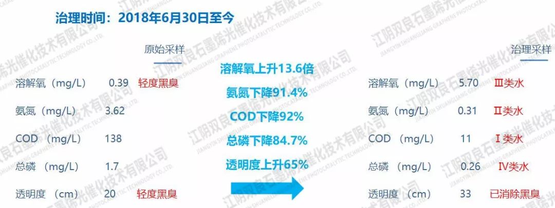 前后數據對比YQj新型光催化網_水庫治理_河道治理_水生態(tài)修復_水環(huán)境治理與修復_江蘇雙良環(huán)境科技有限公司