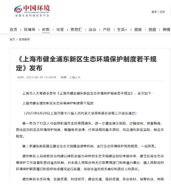 《上海市健全浦東新區(qū)生態(tài)環(huán)境保護(hù)制度若干規(guī)定》于2023年6月20日經(jīng)市十六屆人大常委會第三次會議表決通過,將于2023年8月15日起施行。T09新型光催化網(wǎng)_水庫治理_河道治理_水生態(tài)修復(fù)_水環(huán)境治理與修復(fù)_江蘇雙良環(huán)境科技有限公司