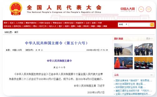 2020年10月17日,十三屆全國人大常委會第二十二次會議表決通過了《中華人民共和國生物安全法》,這部法律自2021年4月15日起施行。rk4新型光催化網(wǎng)_水庫治理_河道治理_水生態(tài)修復_水環(huán)境治理與修復_江蘇雙良環(huán)境科技有限公司