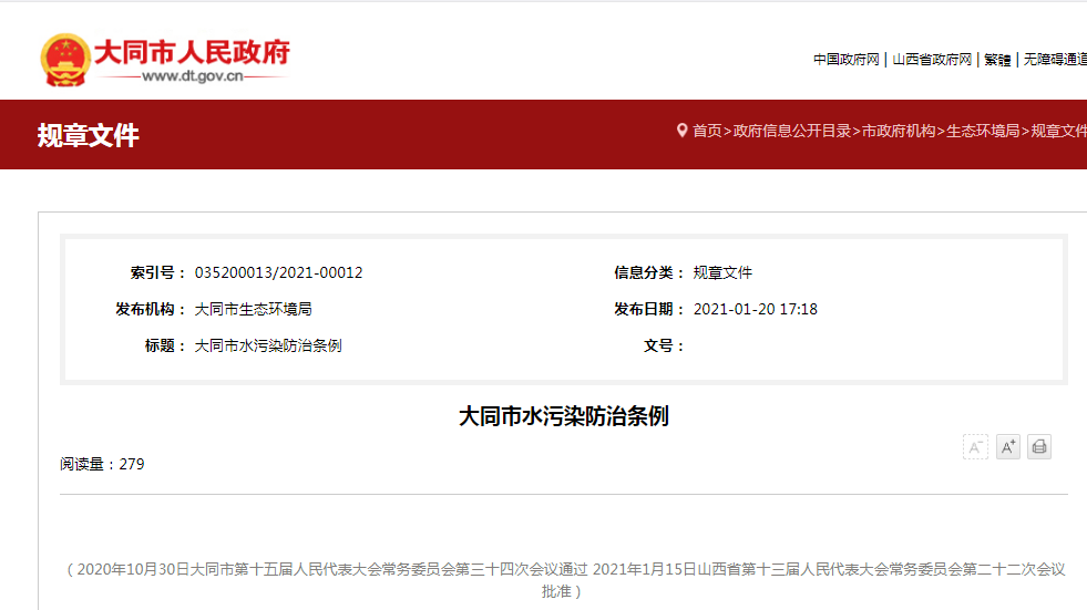 大同市第十五屆人民代表大會常務(wù)委員會第三十四次會議于2020年10月30日通過,山西省第十三屆人民代表大會常務(wù)委員會第二十二次會議于2021年1月15日批準(zhǔn),自2021年5月1日起施行。RDQ新型光催化網(wǎng)_水庫治理_河道治理_水生態(tài)修復(fù)_水環(huán)境治理與修復(fù)_江蘇雙良環(huán)境科技有限公司