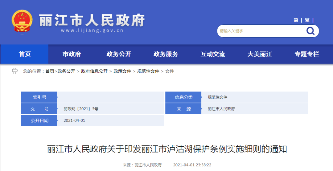 4肆-麗政規(guī)(2021)3號關(guān)于印發(fā)麗江市瀘沽湖保護條例實施細則的通知RDQ新型光催化網(wǎng)_水庫治理_河道治理_水生態(tài)修復(fù)_水環(huán)境治理與修復(fù)_江蘇雙良環(huán)境科技有限公司