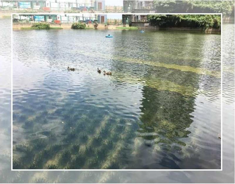 辛養(yǎng)魚塘告別昔日“黑水塘”形象,沿岸的水生植物與清澈見底的池水交相輝映,互相點(diǎn)綴,相映成趣,已成為城市街道新的風(fēng)景線和居民休閑散步的好去處。lX2新型光催化網(wǎng)_水庫治理_河道治理_水生態(tài)修復(fù)_水環(huán)境治理與修復(fù)_江蘇雙良環(huán)境科技有限公司