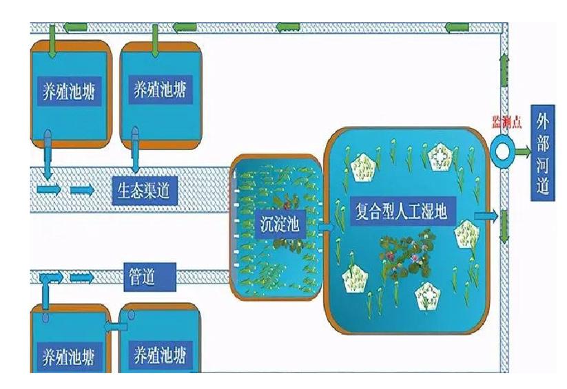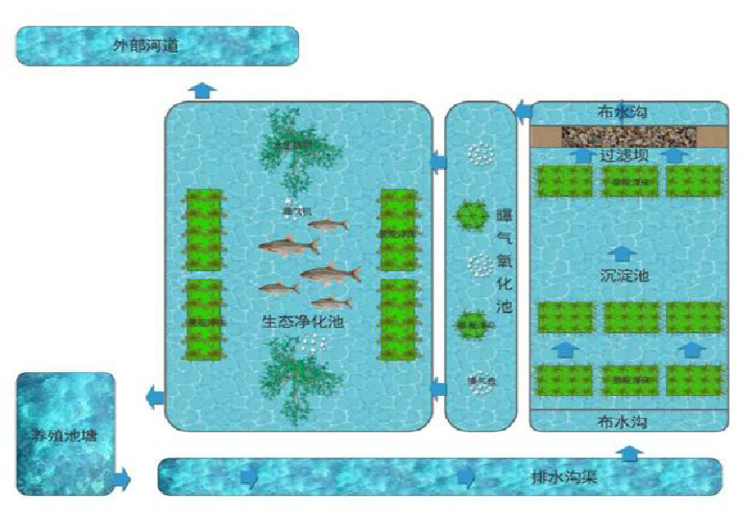 根據(jù)養(yǎng)殖池塘規(guī)模和地理環(huán)境條件,結(jié)合沙洋項目區(qū)水產(chǎn)養(yǎng)殖尾水的特點和實際養(yǎng)殖情況,綜合選用“生態(tài)溝渠、塘表濕地、三池兩壩、魚菜共生”等多種形式、多級生態(tài)凈化的養(yǎng)殖尾水治理模式,實現(xiàn)養(yǎng)殖尾水達(dá)標(biāo)排放和資源化利用。