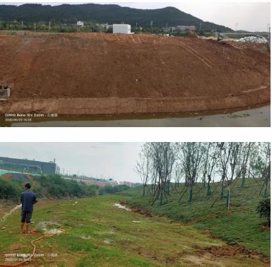 2020年我司承接了四川綿陽木龍河黑臭水綜合治理項目工程,然而受疫情影響工期推遲,我們于6月20號開始進場施工,施工范圍為紅巖子橋沿惠科方向300米邊坡修整和裸露土覆蓋,新建橋處沿紅巖子橋處135米邊坡修整及撒混播草籽喬木和灌木種植,鋪設(shè)草皮等施工項。施工期間工作人員嚴格按照疫情防護要求,做好防護措施,同時不畏炎熱辛苦,本著“為客戶創(chuàng)造價值”的理念,提升木龍河兩岸的生態(tài)“顏值”,同時也為促進環(huán)境與城市相互和諧,相互融合,進一步提升綿陽市人民的居住環(huán)境貢獻出一份力量。