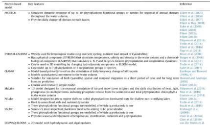 表1. 基于循環(huán)過程的模型的列表,包括關鍵特征和預報害藍藻水華事件的應用