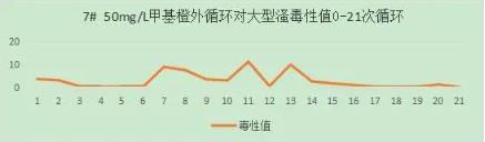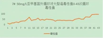 50mg/L亞甲基藍溶液外循環(huán),水槽中是否加入光催化網(wǎng)進行對照試驗,60min/循環(huán),收集排水再循環(huán),4L。實驗運行43次循環(huán)。從大型溞毒性值與循環(huán)數(shù)的關系上,可以看出50mg/L亞甲基藍溶液對大型溞有較小影響。FNZ新型光催化網(wǎng)_水庫治理_河道治理_水生態(tài)修復_水環(huán)境治理與修復_江蘇雙良環(huán)境科技有限公司