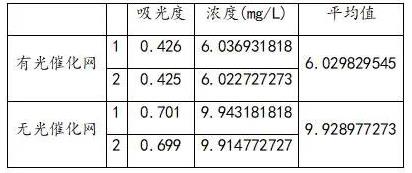 通過對比有無光催化網(wǎng)中甲基橙溶液的濃度對比,進一步確定,光催化網(wǎng)對凈化水質(zhì)有一定的效果。FNZ新型光催化網(wǎng)_水庫治理_河道治理_水生態(tài)修復_水環(huán)境治理與修復_江蘇雙良環(huán)境科技有限公司