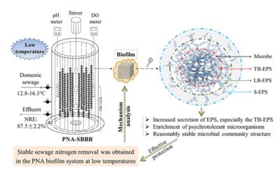 vx4新型光催化網(wǎng)_水庫治理_河道治理_水生態(tài)修復(fù)_水環(huán)境治理與修復(fù)_江蘇雙良環(huán)境科技有限公司圖1 PNA-SBBR系統(tǒng)低溫條件下生物膜污水穩(wěn)定脫氮原理圖