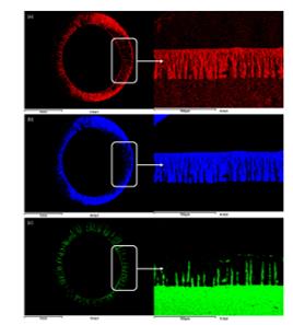 圖2 浸漬TiO2((a)、氧(b)、鋁(c)的不對稱氧化鋁中空纖維載體的EDS圖像r1K新型光催化網(wǎng)_水庫治理_河道治理_水生態(tài)修復(fù)_水環(huán)境治理與修復(fù)_江蘇雙良環(huán)境科技有限公司