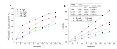 圖3 雜化體系中鉻(Ⅵ)初始濃度對(a)光催化還原和(b)動力學(xué)線性擬合曲線的影響r1K新型光催化網(wǎng)_水庫治理_河道治理_水生態(tài)修復(fù)_水環(huán)境治理與修復(fù)_江蘇雙良環(huán)境科技有限公司