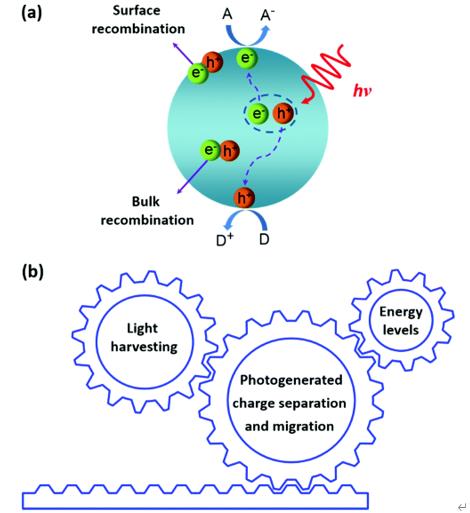 r1K新型光催化網(wǎng)_水庫治理_河道治理_水生態(tài)修復(fù)_水環(huán)境治理與修復(fù)_江蘇雙良環(huán)境科技有限公司圖2 (a) 聚合物半導(dǎo)體光催化的主要過程(D:電子給體;A:電子受體);(b)影響其光催化性能的關(guān)鍵因素。