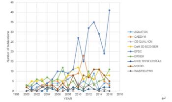 fTW新型光催化網(wǎng)_水庫治理_河道治理_水生態(tài)修復(fù)_水環(huán)境治理與修復(fù)_江蘇雙良環(huán)境科技有限公司圖7:9種綜述模型(來源:Scopus )的年出版物( 2000 - 2016 )fTW新型光催化網(wǎng)_水庫治理_河道治理_水生態(tài)修復(fù)_水環(huán)境治理與修復(fù)_江蘇雙良環(huán)境科技有限公司在過去的幾十年里,環(huán)境科學(xué)家把數(shù)值模擬作為研究和調(diào)查水生系統(tǒng)的工具。生態(tài)和水動力模型因其復(fù)雜性、不確定性和計算能力而并行發(fā)展。生態(tài)邏輯模型被用來評估生態(tài)系統(tǒng)過程和相互作用、模擬未來情景、評估應(yīng)對富營養(yǎng)化的補救做法。本文綜述了與富營養(yǎng)化過程相關(guān)的生態(tài)學(xué)建模方面的進展,特別是在描述缺氧/缺氧水生生態(tài)系統(tǒng)營養(yǎng)狀態(tài)動態(tài)的模型方面。根據(jù)水動力模型的歷史、復(fù)雜性、局限性、最近的詳細(xì)建模應(yīng)用,討論了Delft 3D - ECO / GEM和MIKE 3DFM ECOLAB的非耦合模型以及AQUATOX、CAEDYM、CE - QUAL - ICM、WASP / EUTRO、MOHID和EFDC的耦合模型等九種耦合或非耦合的動力生態(tài)模型以及他們的重要成果。介紹了這些模型的優(yōu)缺點及其應(yīng)用領(lǐng)域。通過對比分析得出結(jié)論:EFDC 和 CAEDYM 可被視為富營養(yǎng)化過程中特別有效的建模工具。