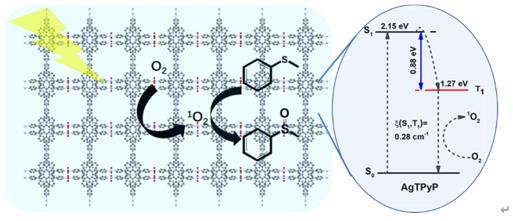 2) 的重要光敏劑。然而,卟啉衍生物仍然表現(xiàn)出低效率和難以回收的特性。 在這項(xiàng)研究中,合成了一種基于 Ag 的 MOFs(AgTPyP;TPyP,5,10,15,20-四(4-吡啶基)卟啉)。與配體TPyP相比,AgTPyP在硫化物光催化選擇性氧化成亞硫酰氯過程中表現(xiàn)出近100%的轉(zhuǎn)化率和選擇性,并且在可見光下具有明顯的光動(dòng)力效果。綜合表征表明,