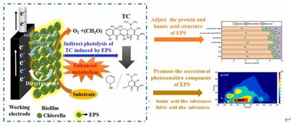 9Zm新型光催化網(wǎng)_水庫(kù)治理_河道治理_水生態(tài)修復(fù)_水環(huán)境治理與修復(fù)_江蘇雙良環(huán)境科技有限公司圖5 電刺激和抗生素誘導(dǎo)聯(lián)合產(chǎn)生微藻源光敏劑增強(qiáng)TC光解的圖式機(jī)制